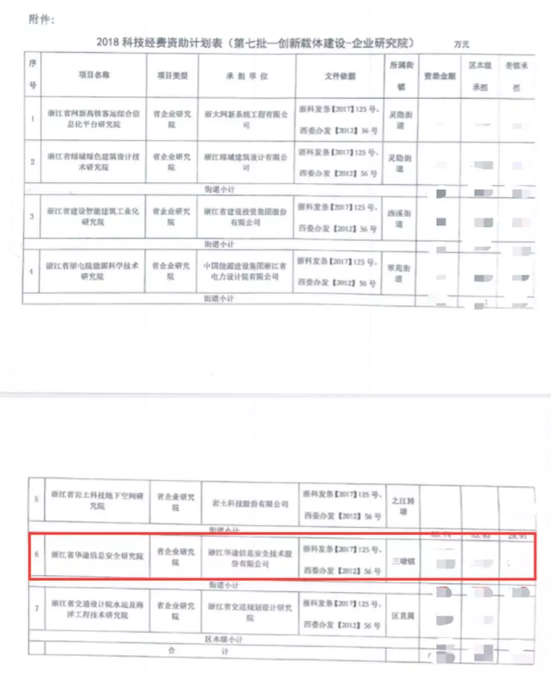 2018年11月16日,根据《西湖区加快“六区建设”提升产业转型升级的若干意见(试行)》(西政发[2014]22号)、《西湖区加快科技创新先导区发展扶持意见(试行)》(西委办发[2012]56号)文件精神和上级有关文件依据,确定我区2018年第七批(创新载体建设-企业研究院)科技经费资助计划,共7家单位。华途股份荣幸获得科技经费资质资金。