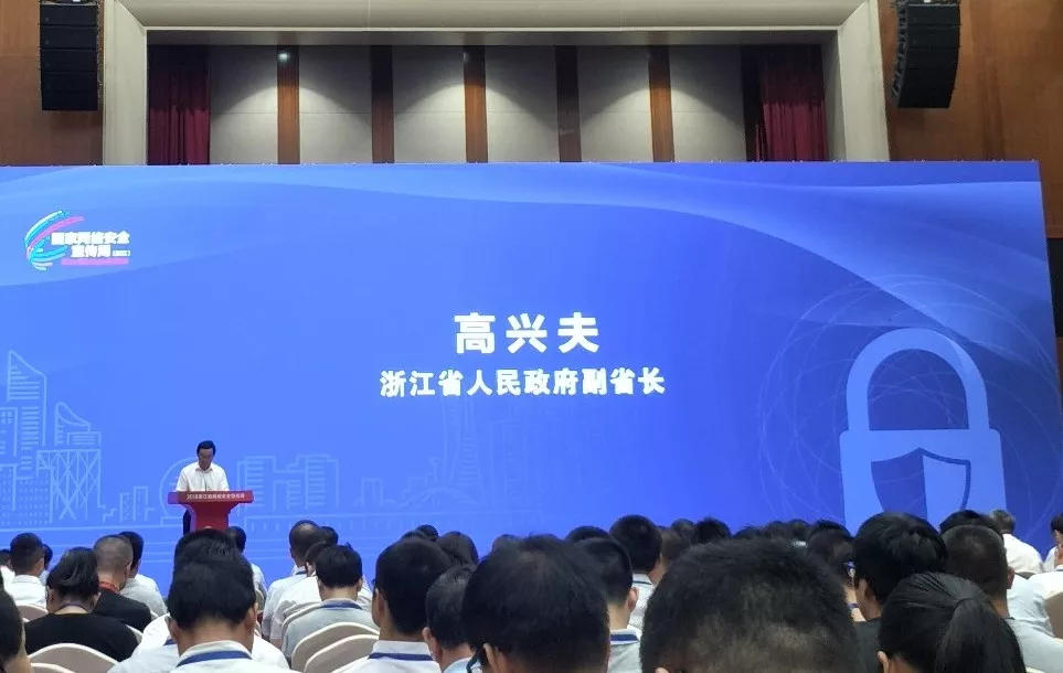 浙江省人民政府副省长高兴夫发表讲话:上半年浙江省网络刑事案件多发,个人信息泄露事件频发,网络安全为人民,要保障人民群众的信息安全;坚持网络安全为人民的同时,要坚持网络安全靠人民。高省长从政府、企业、网民等不同的角度提出了网络安全的建议,并宣布宣传周活动正式启动。