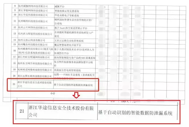 根据《关于组织申报2017年西湖区工业和信息化发展财政专项资金项目的通知》(西发改[2017]71号)等文件要求,浙江华途信息安全技术股份有限公司申报的《基于自动识别的智能数据防泄漏系统》项目通过了相关部门的审核及专家的评审。