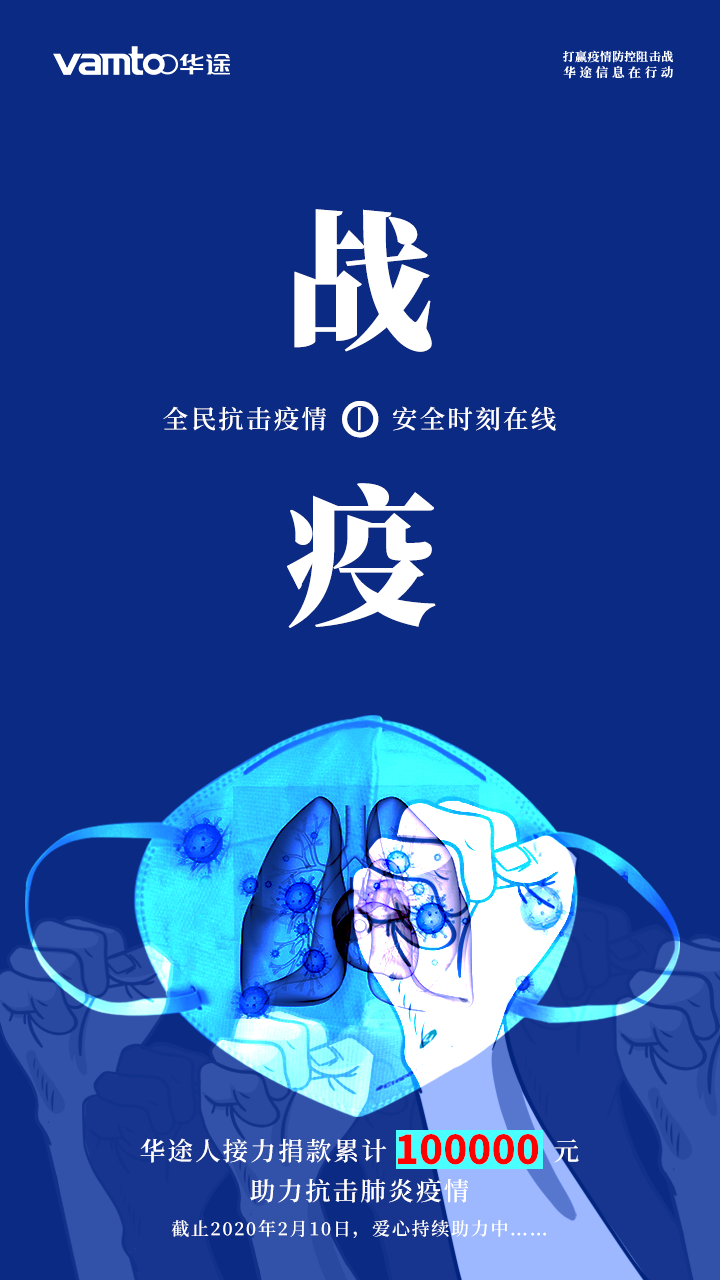 华途人表现出了高度的社会责任感,发起了爱心接力捐助活动。截止2020年2月10日,华途信息已向杭州市西湖区红十字会、清华经管浙江校友会募捐专项累计捐款100000元,将用于浙江省医疗机构抗击病毒及疫情防治工作,助力奋战在一线的医护人员,同全国人民一起迎击这场看不见硝烟的战争,共同防疫,共渡难关!